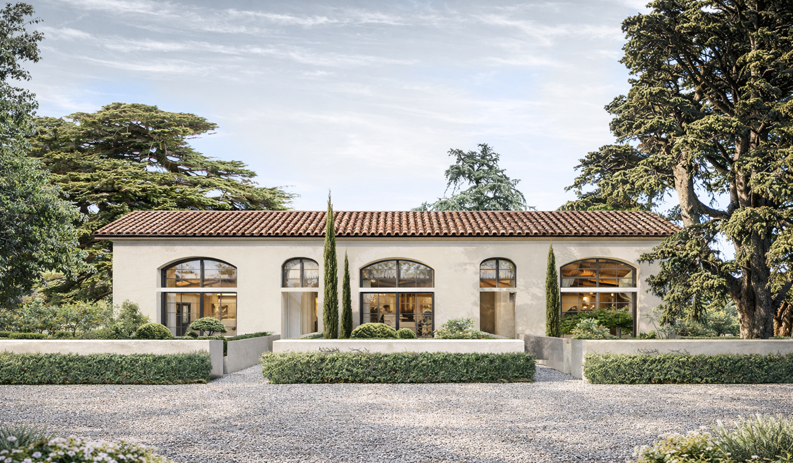 Les ouvertures arquées constituent un élément fort du projet. Inspirées des anciennes orangeries, elles structurent les façades et apportent une identité architecturale singulière à l’ensemble.