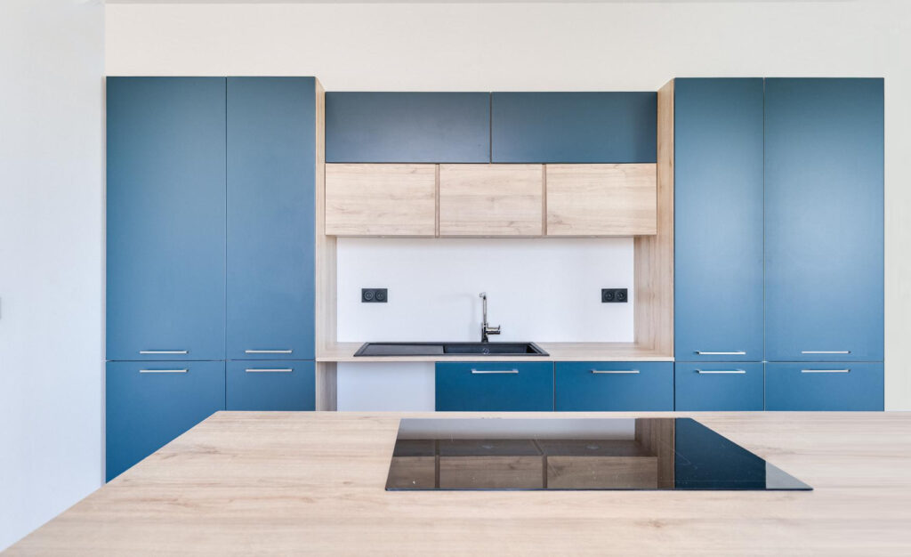 À l’intérieur, le projet prend un tournant résolument moderne. L’agence Poydenot a repensé les espaces de vie pour les rendre plus ouverts et lumineux. La suppression de certaines cloisons a permis de créer un espace de vie généreux, englobant la cuisine, la salle à manger et le salon, tout en favorisant l’entrée de lumière naturelle grâce à de grandes fenêtres d’un seul tenant vers la vue mer.