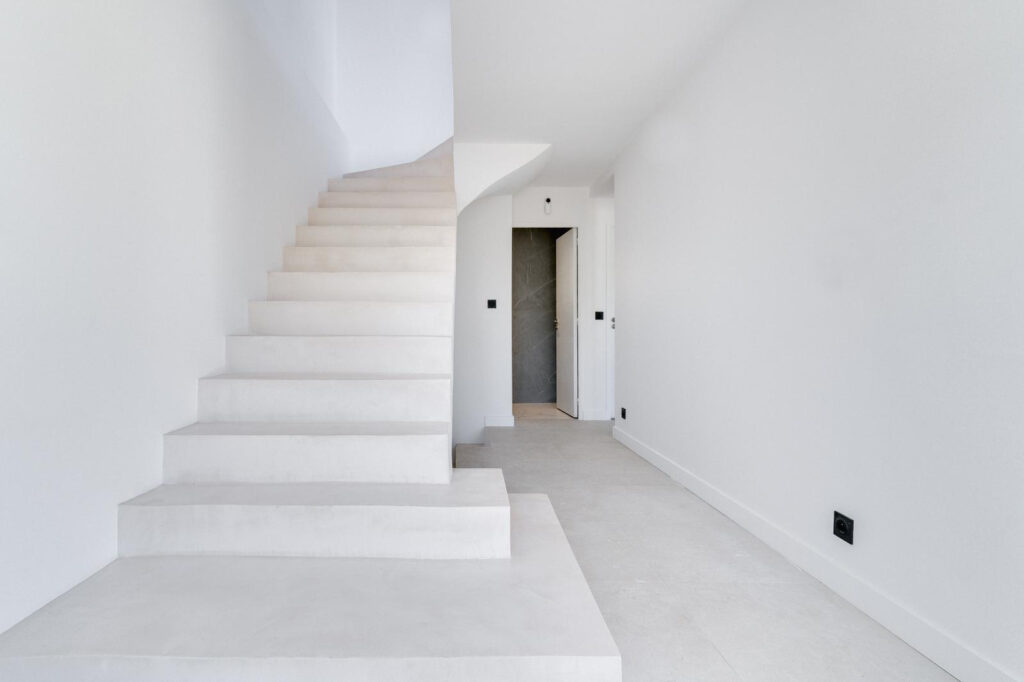 Le design intérieur mélange éléments vintage et contemporains. L’utilisation de matériaux nobles tels que le bois, la pierre et le métal apporte une touche d’élégance et de chaleur. Les couleurs sont neutres avec des teintes pastelles, sélectionnées pour mettre en valeur les détails architecturaux originaux.