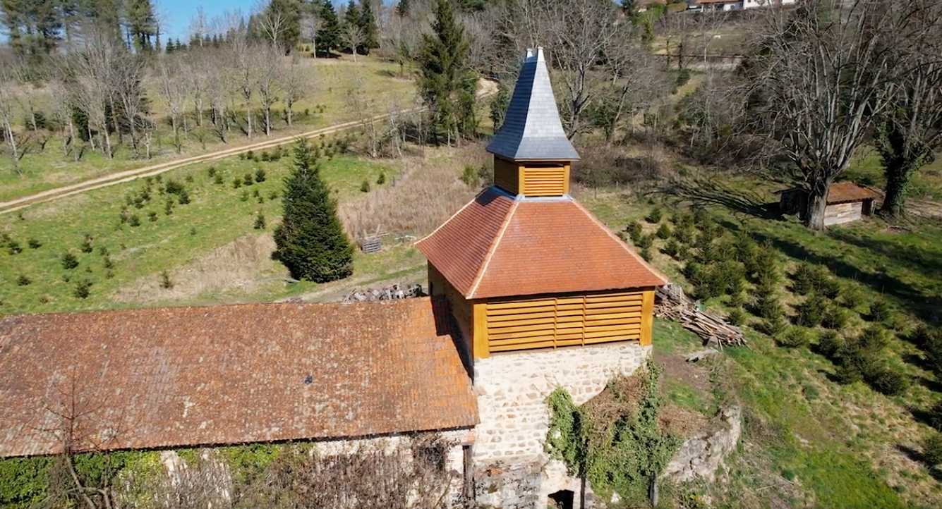 Le clocheton, élément emblématique du four à tuiles, a été restauré avec une couverture en ardoise, conformément aux usages historiques.