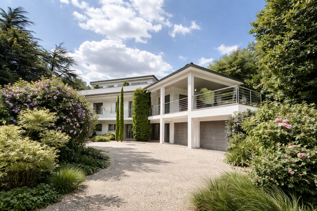 Cette teinte unifie l’ensemble du bâti, renforce la luminosité et donne à la maison une écriture contemporaine, épurée et pérenne.